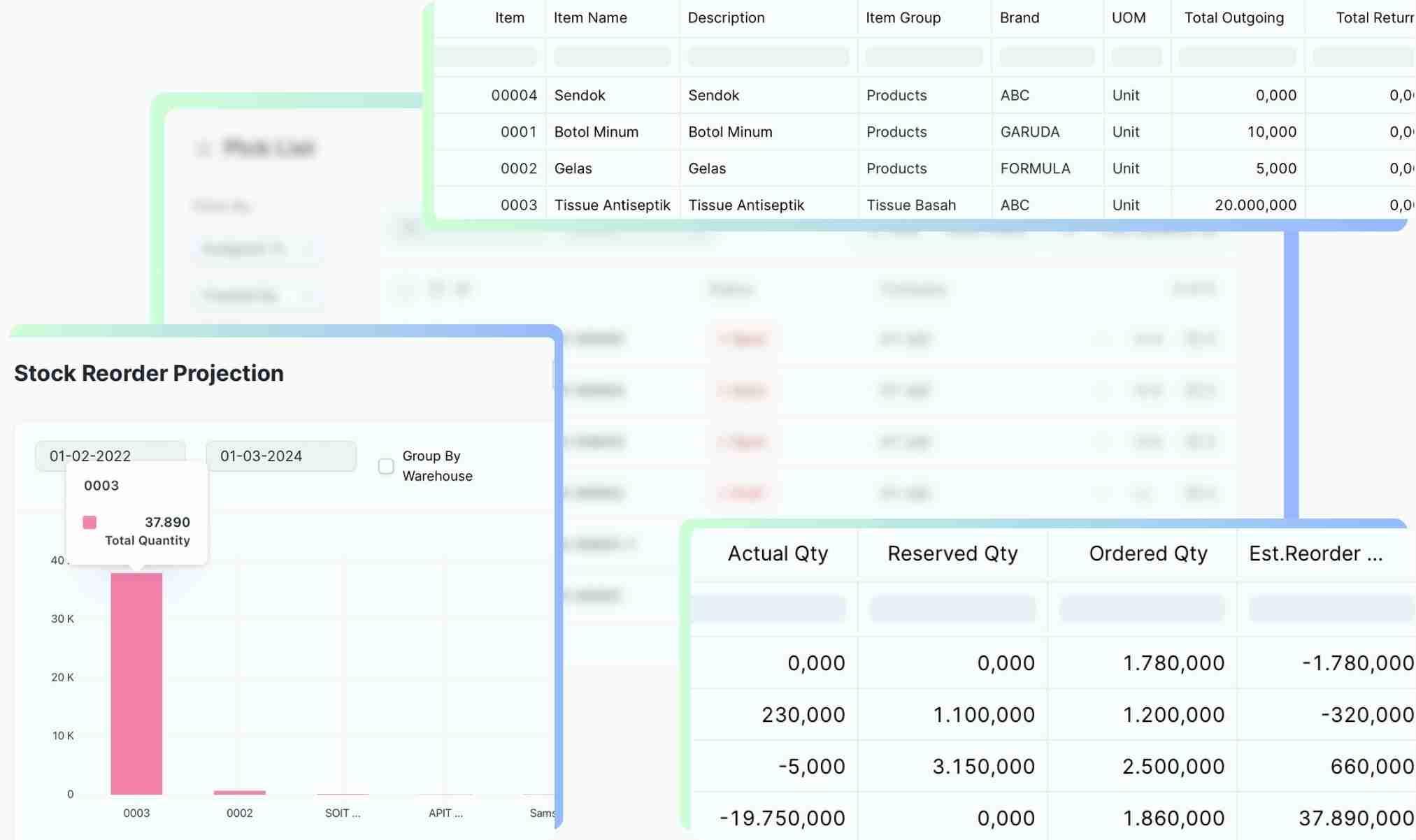 Ga perlu ribet lagi buat hitung jumlah stok barang yang cukup dan antisipasi potensi jumlah permintaan barang yang meningkat tinggi atau proses pengiriman barang yang cukup lama dengan fitur Reorder Projection dari Bisaa.Work.